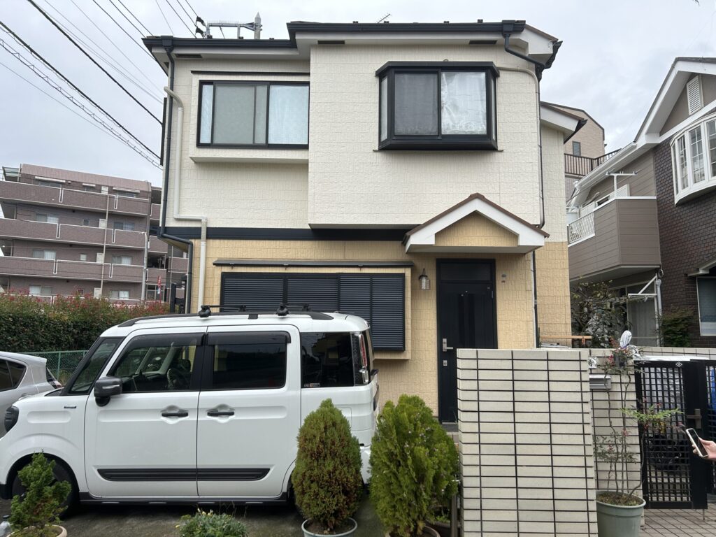 屋根外壁塗装工事 2025-10-01 最終更新日時 : 2025-10-01 mamakari 施工前→施工後 工事の概要 地域施工箇所スレート屋根サイディング外壁シール施工内容工期約3週間施工費用築年数使用商材・建材